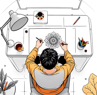 2단계(창의성): 공부 30분마다 5분씩, 색연필로 간단한 만다라 그리기를 했습니다. (유튜브에서 "만다라 색칠"을 검색하면 무료 도안이 많습니다)